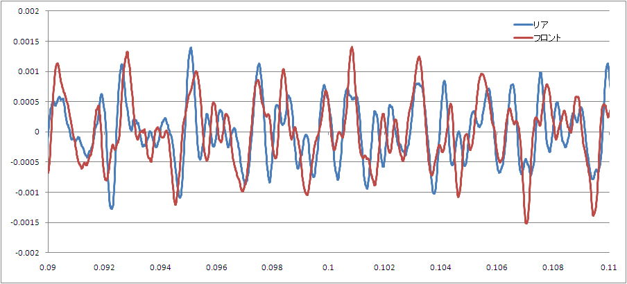 左から、0.001~0.02秒までの間、0.09~0.11秒までの間、一番右が、0.29~0.31秒目の間。