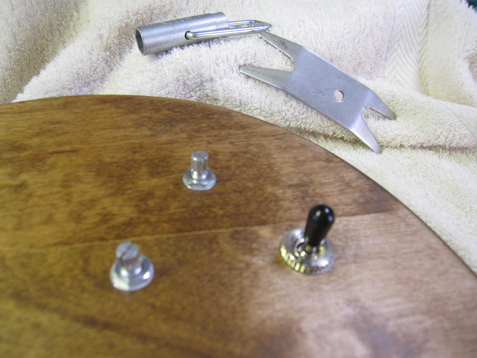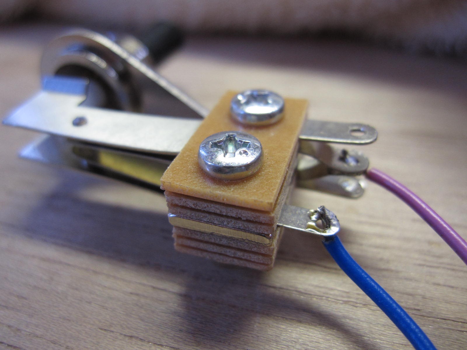ボリューム用のポット、トーン用のポット、トグルスイッチを下準備