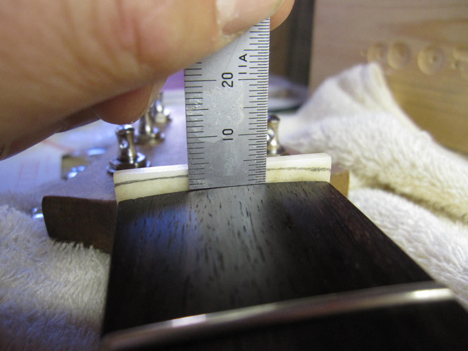とりあえず、12フレットが311mmになるように、スケールで確認しつつ、